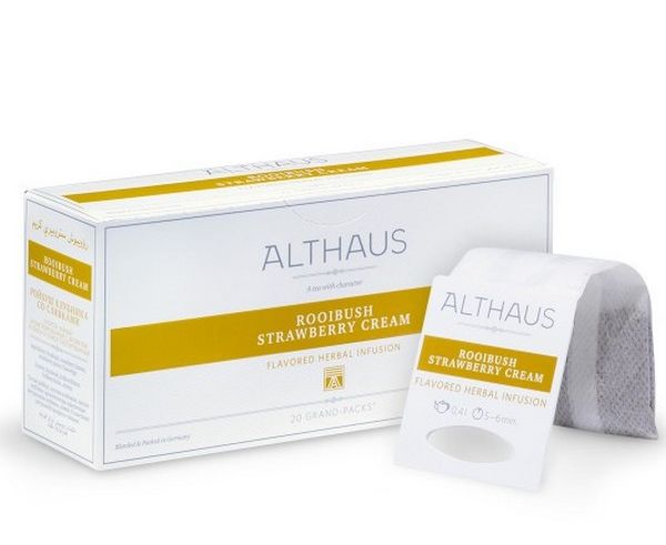 Чай травяной для чайника Rooibush Strawberry Cream (Ройбуш Клубника со Сливками), 20 пак., Grand Packs, Althaus