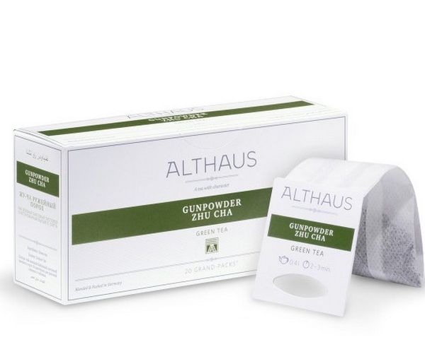 Чай зеленый для чайника Gunpowder Zhu-Cha (Жу-Ча Ружейный порох), 20 пак., Grand Packs, Althaus