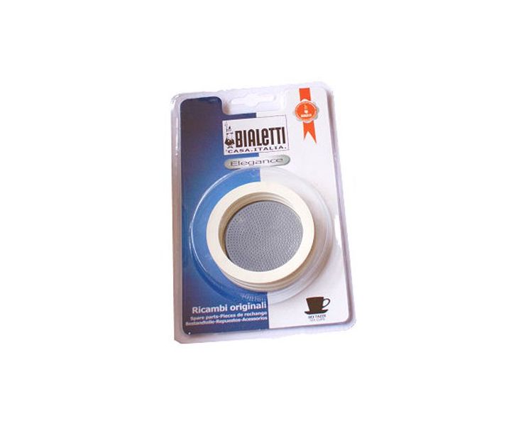 Набор для гейзерных кофеварок Bialetti на 4 чашки: 3 резиновых уплотнения + сито из нержавеющей стали в блистерной 0186002, Bialetti